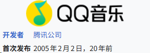 可当我真去查了下,发现QQ音乐的首次发布时间,刚好是20年前。