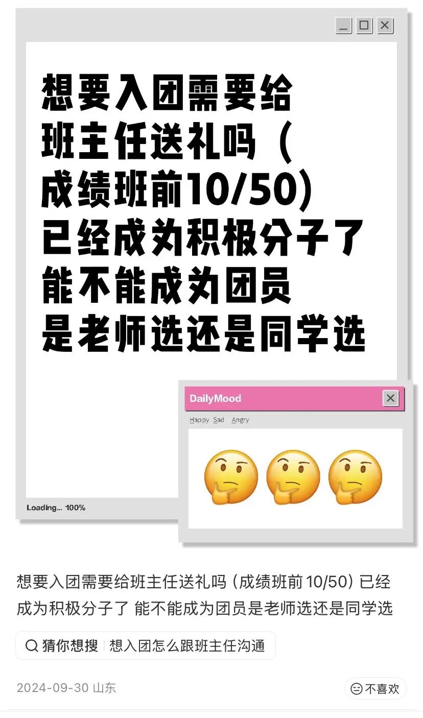 没想到,入党名额的竞争如今已经前移到入团的关口,有些家长为了让孩子早入团积累年资,或者想让不符合条件的孩子入团,就捡起了代代相传的老办法: