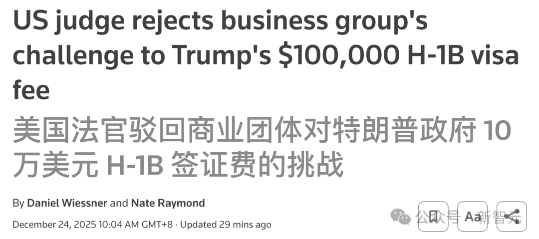 就在刚刚,法官驳回了美国大厂——推翻10万美金「入场券」的请求。