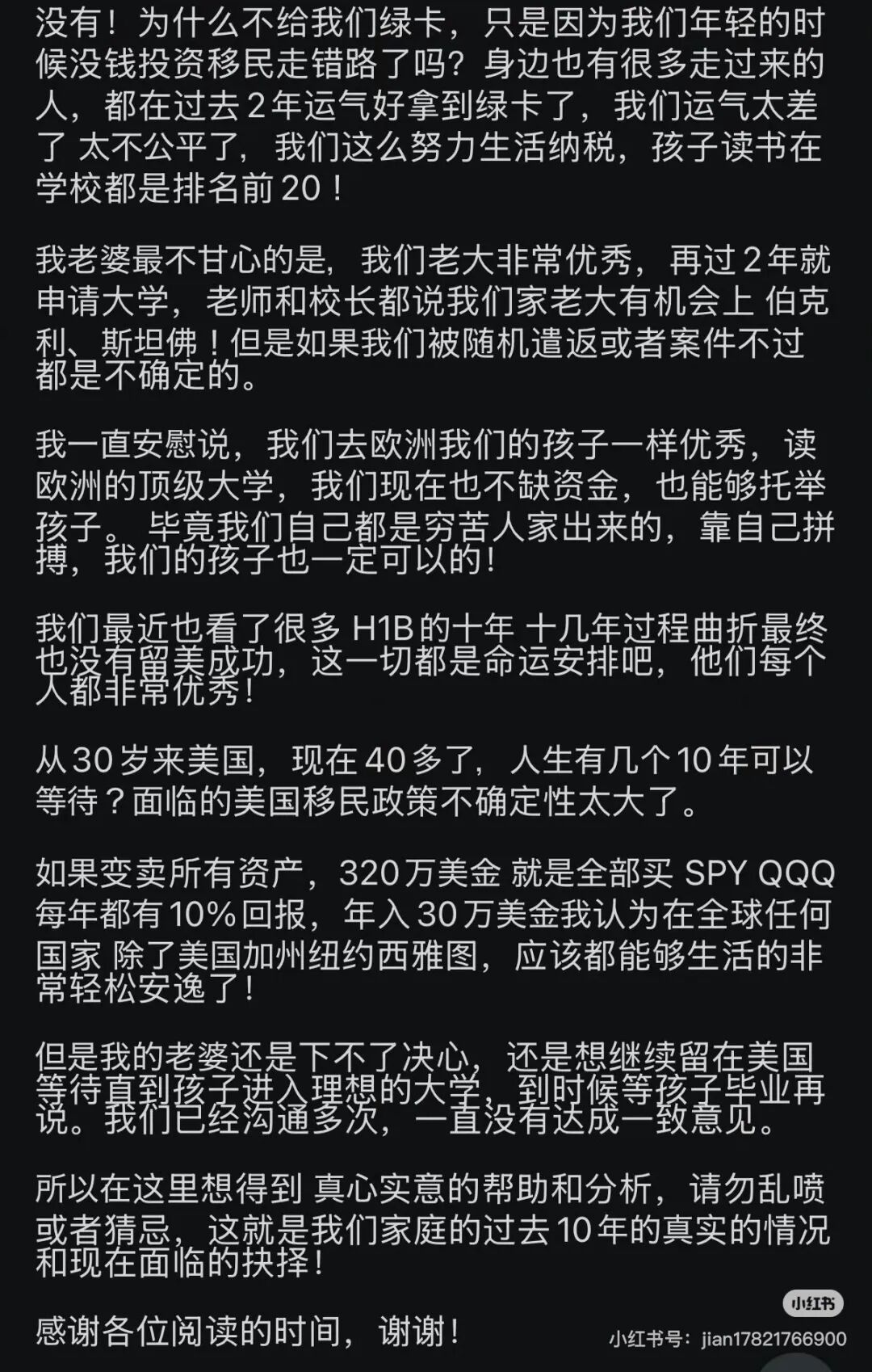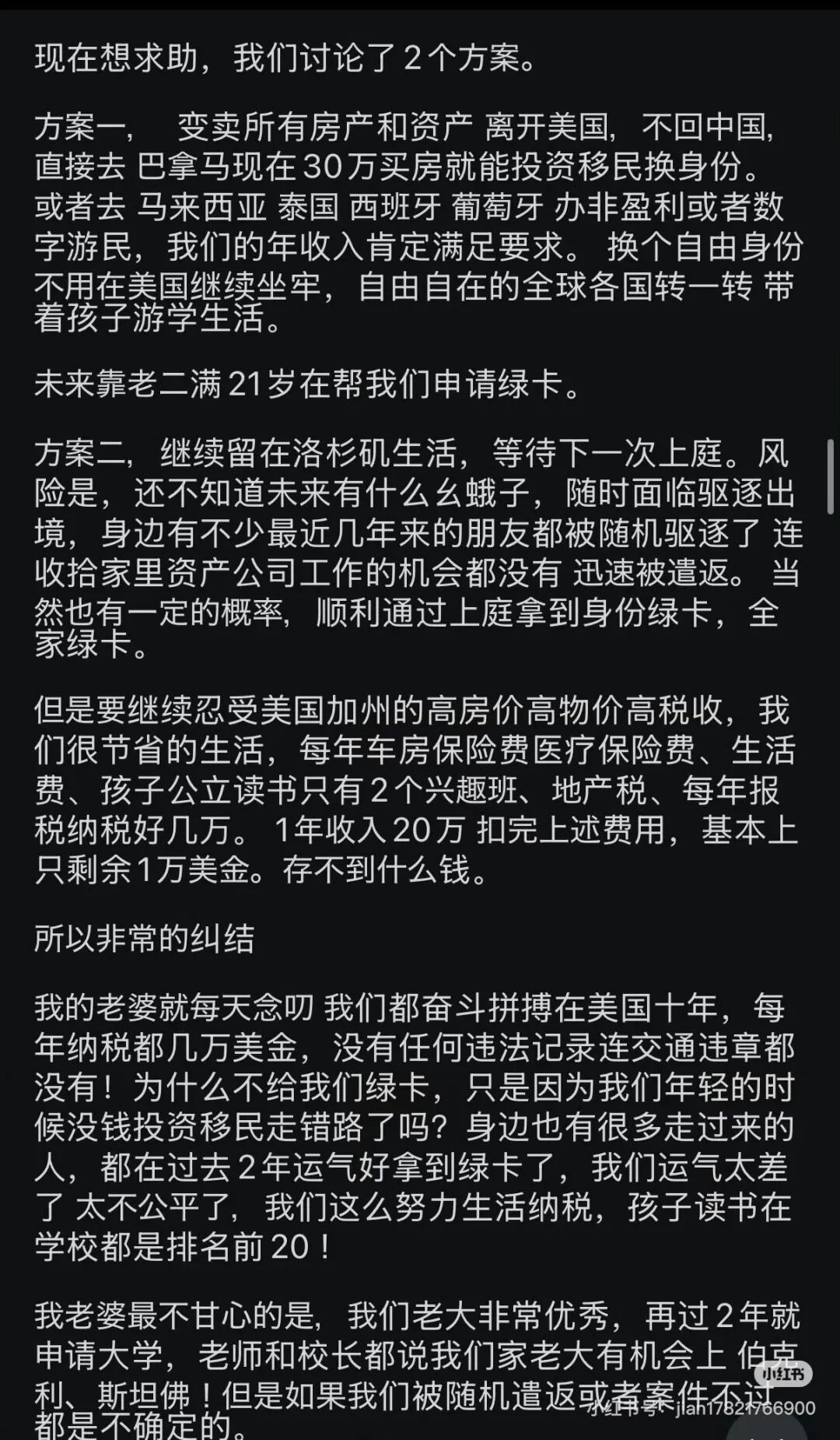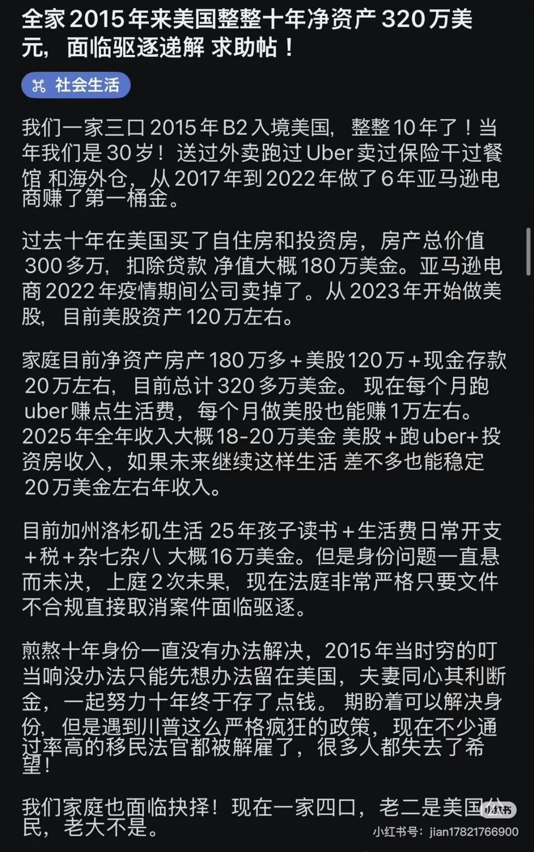 这两天,社交媒体上一位华人因全家面临被驱逐出境,发布了一篇引发大量共鸣的热帖。