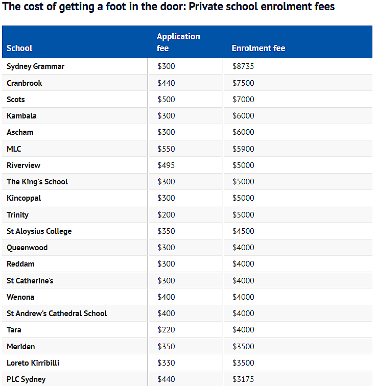 东区的Cranbrook、Kambala、Ascham和Scots今年的注册费均在6000澳元或以上。