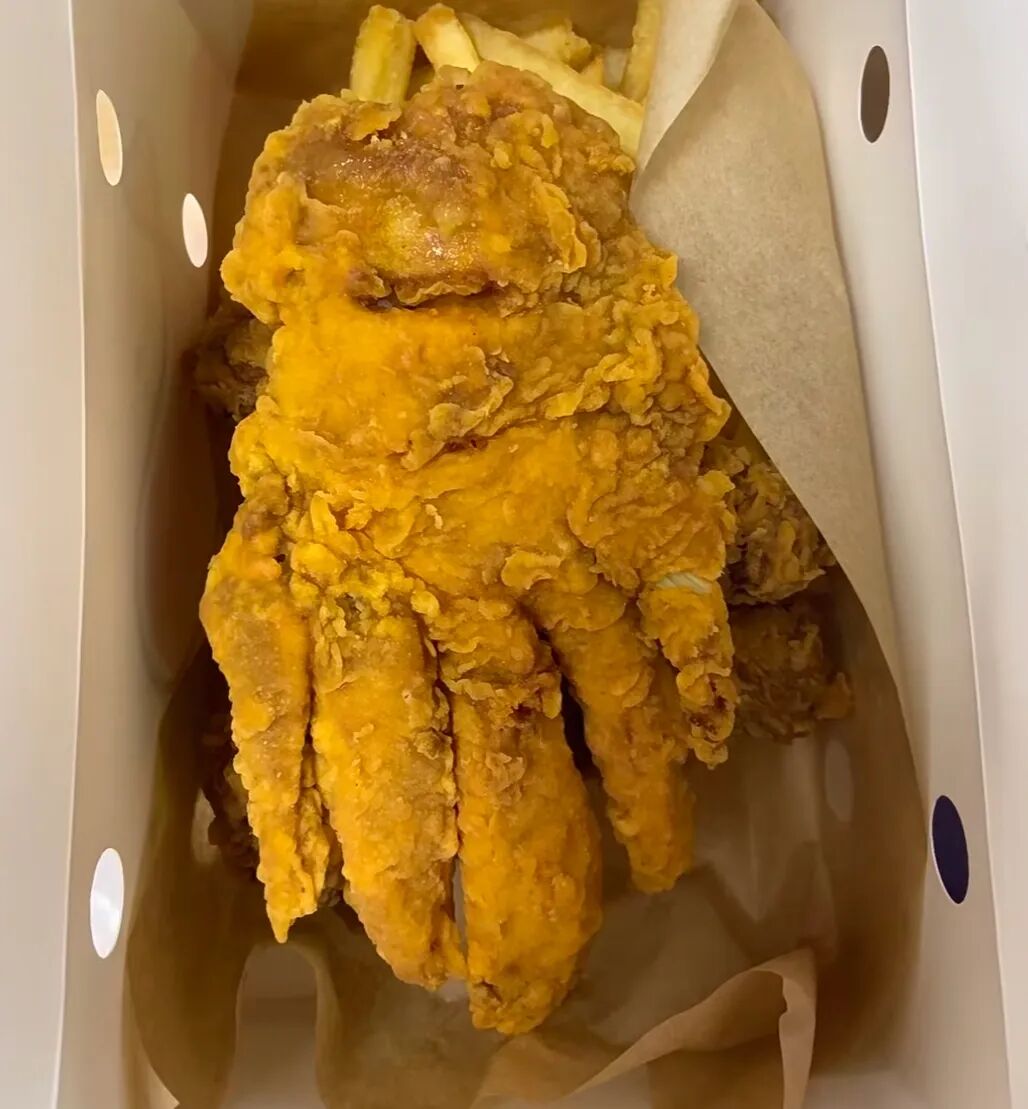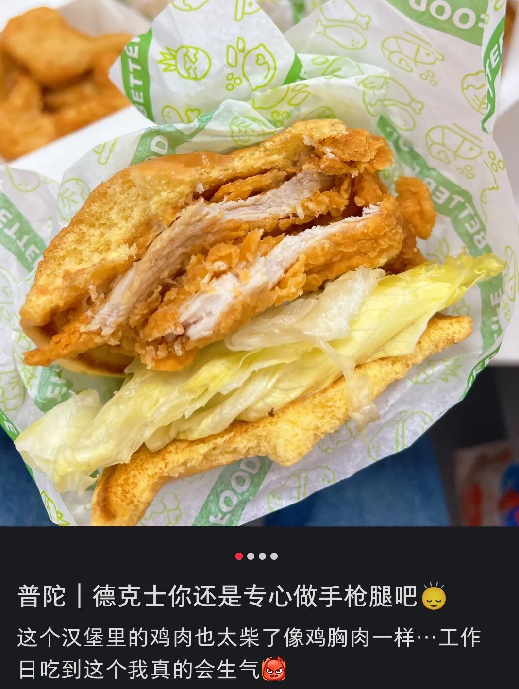 招牌产品脆皮手枪腿已推出十余年,至今仍是主打。德克士并非没有尝试创新,但创新方向完全跑偏。2022年推出的“手掌鸡排”,被消费者吐槽像“六根长短不齐的手指头”,戏称为“恐怖鸡排”。