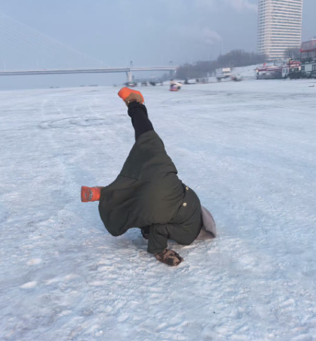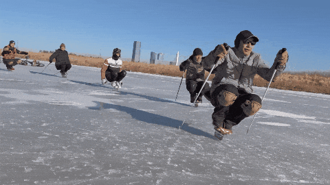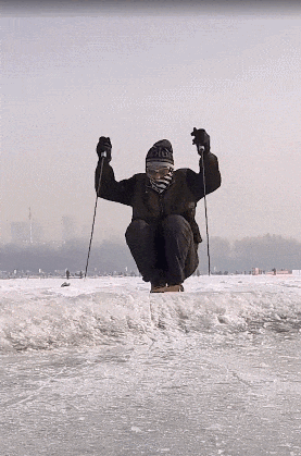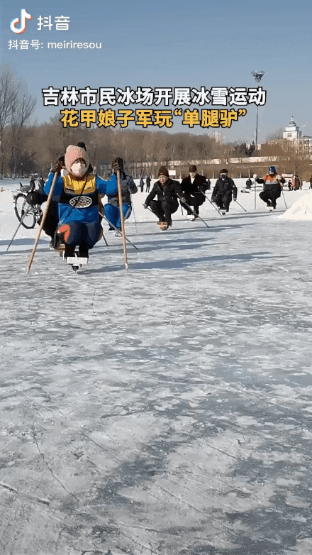 你需要蹲得极低,重心沉在脚底那条微不可见的线上,双手握着的冰钎不仅仅是推进器,更是你的平衡木。在那一收一放的频率里,稍有偏差,你就不是在滑冰,而是在冰面上放飞自我,不知道的还以为在玩breakin。