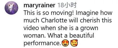 “太让人感动了!想象一下,夏洛特长大后再看这段视频,会觉得它多珍贵啊。表演太精彩了!”