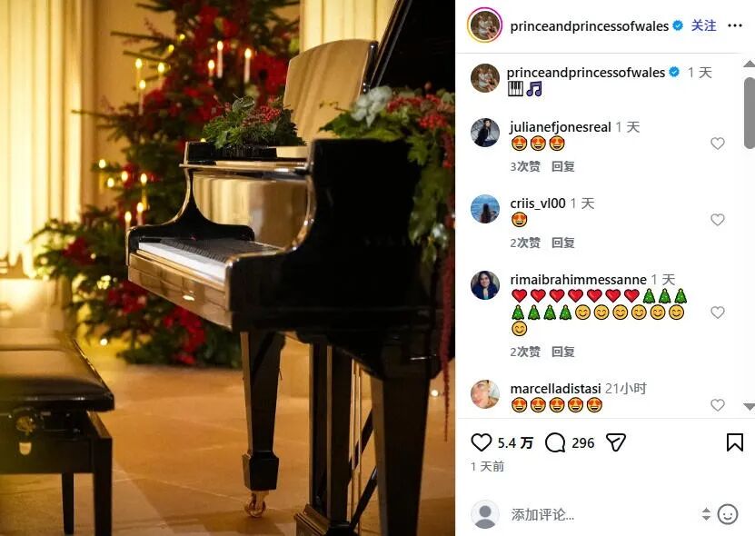 “这绝对是我最喜欢的冬至时刻之一。走进城堡,面前摆着一架施坦威三角钢琴,然后欣赏一场如此动人的表演。”