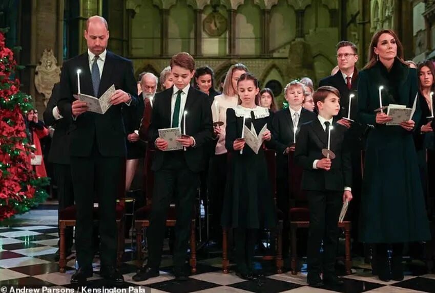 和往年一样,今年的圣诞颂歌会,凯特威廉一家五口全部盛装出席。