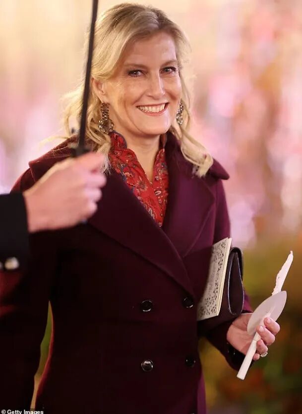 比如威廉的婶婶、爱丁堡公爵夫人苏菲,她身穿一件酒红色外套出席颂歌会。