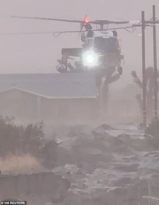 圣贝纳迪诺县消防局描述现场为“一条泥水河流切割公路”,消防员挨家挨户疏散被困居民,并展开迅水救援。警方下令居民就地避险,并警告:“请勿尝试步行或驾车穿过洪水淹没的地区。”