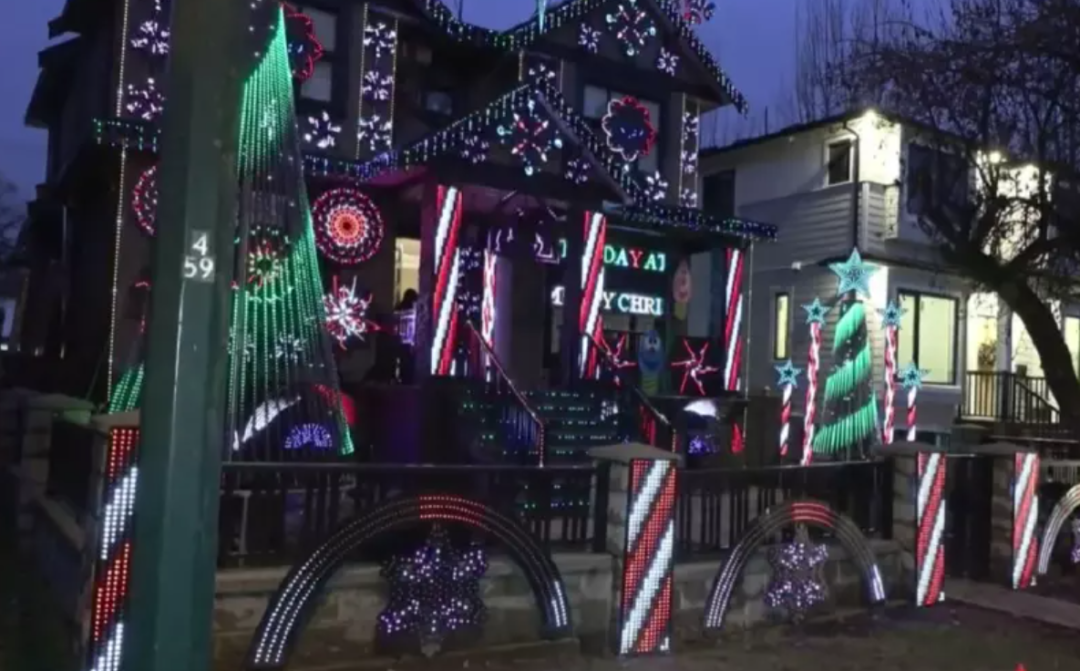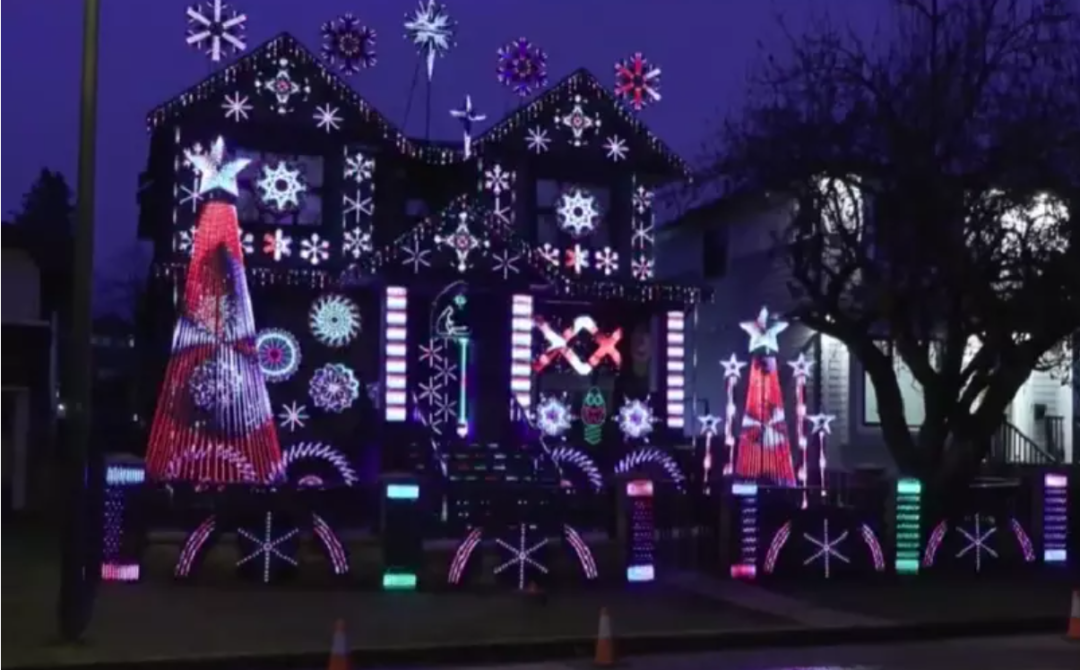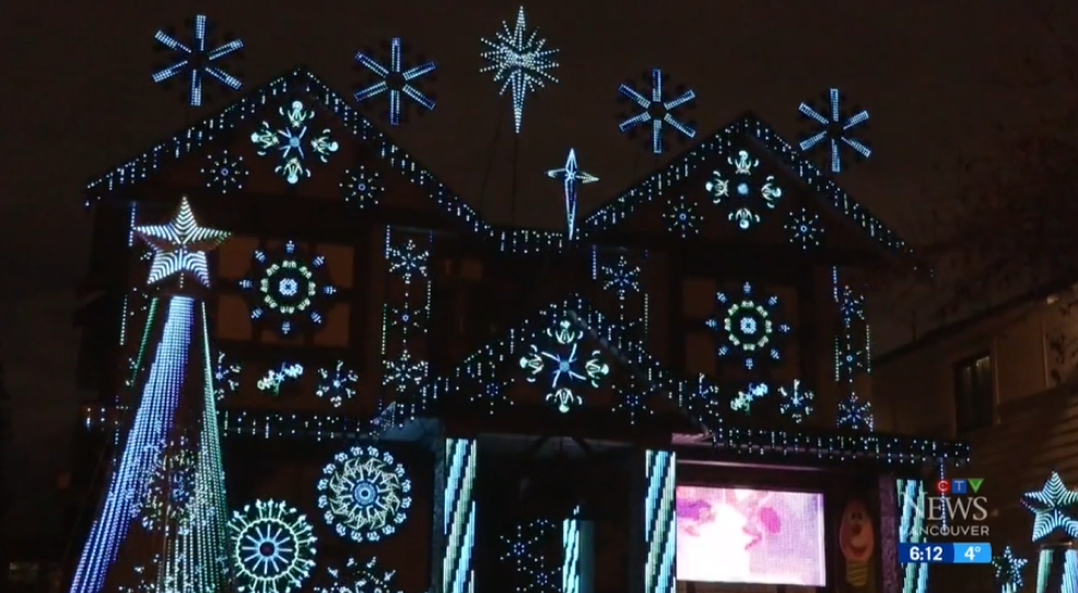 很多家庭都会在圣诞佳节把家居悉心布置,装上七彩缤纷的灯饰,但很少人能像温哥华这户人家那样,把它升华为一场吸引民众慕名而来驻足观赏的幻彩灯光骚,看过的人都赞叹不已。
