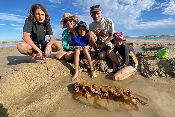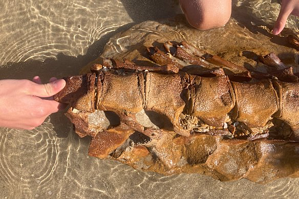 一家人在维州Bellarine半岛的Ocean Grove海滩上发现了看起来像鲸鱼骨骼化石的东西。这值得关注吗?