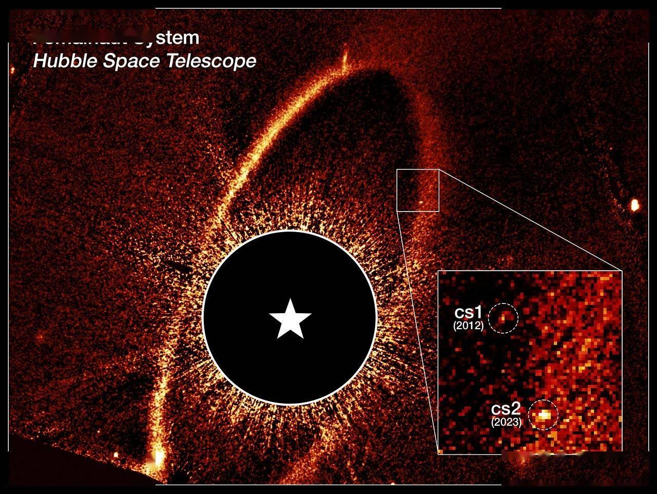 科学家在近期哈勃观测中寻找北落师门 b 时,意外地在该恒星周围相似位置发现了第二个光点。他们将这个新天体称为“环恒星源 2”(cs2)。