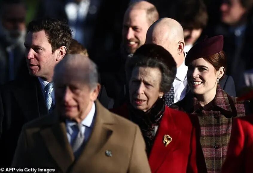 除了亲儿子,查尔斯的手足中也有一些人跟他一起过节,比如安妮长公主,她今年穿了一件大红色大衣。