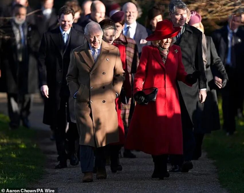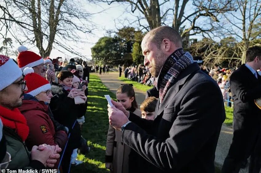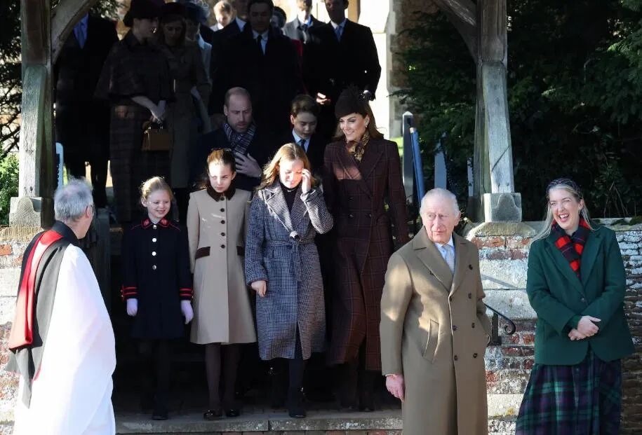 12月25日圣诞节这天,英国王室高级成员像以往一样,齐聚桑德灵厄姆庄园过节。上午,他们先去教堂进行一小时的礼拜仪式,从教堂出来之后,会跟等在附近的民众进行互动,这一套是每年都有的固定环节。