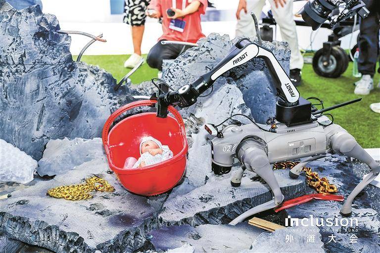 在AI科创表演赛上,机器人翻越崎岖高地,操作电箱闸刀,安插火药雷管,甚至还在废墟中成功救出“婴儿”,展现AI应用的广阔前景。(受访者供图)