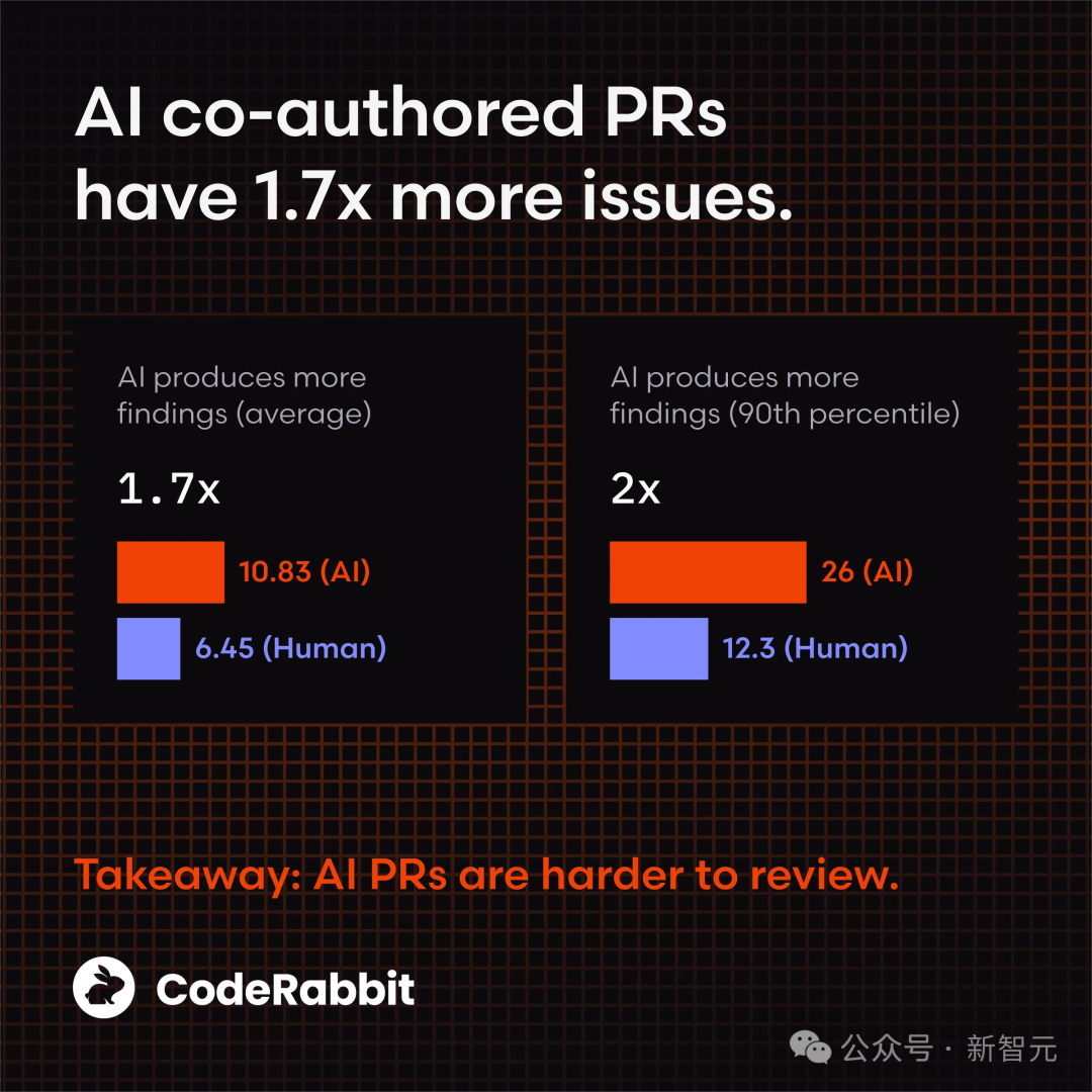CodeRabbit分析了470个代码合并请求(Pull Request),得出了一个量化的结论:
