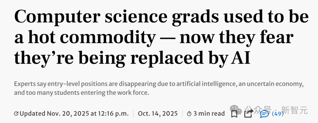 而且AI,也没有给年轻的CS毕业生们留下丝毫活路。