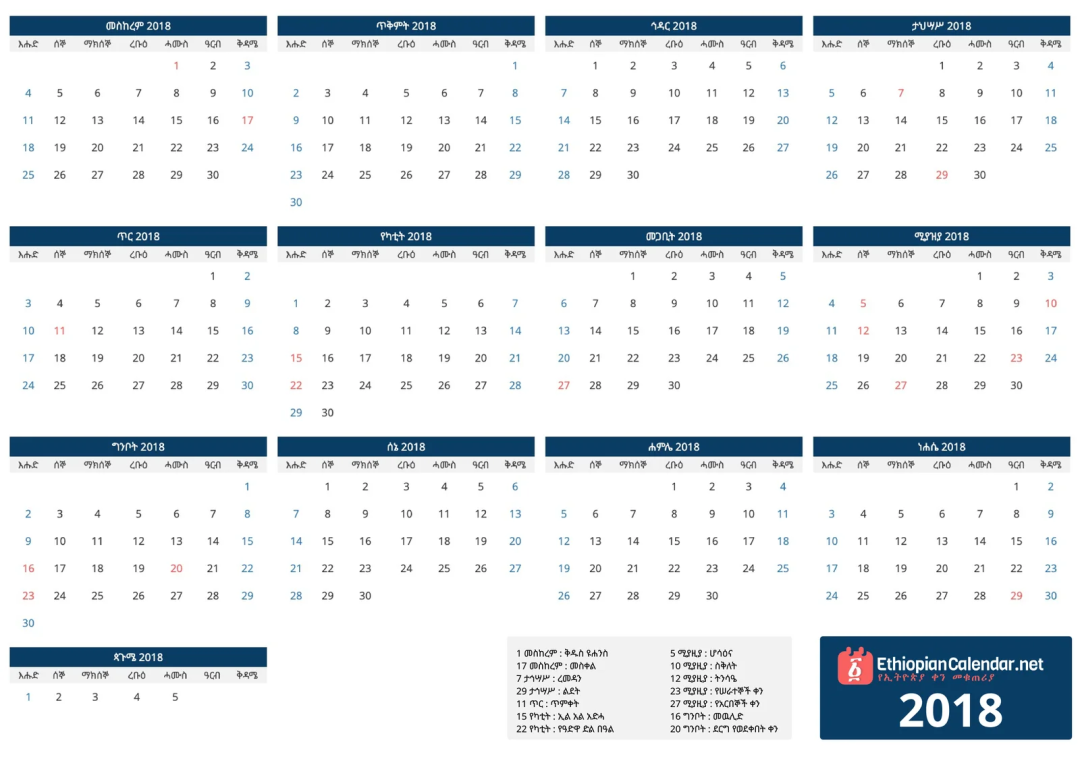 除了年份,你如果看到埃塞俄比亚的年历,还会发现他们的月份安排也与众不同。