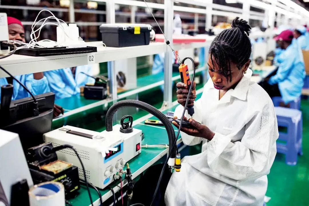 2024年1月,乌干达姆巴莱工业园内的一家小米手机工厂。图/视觉中国