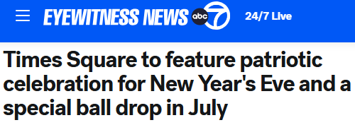 据ABC7 12月27日报道 当纽约市在新年夜完成水晶球降落仪式后,这颗水晶球还将再次升起,并以红、白、蓝三色璀璨闪耀,迎接2026年的到来,同时拉开全美未来数月庆祝建国250周年活动的序幕。ABC7报道截图