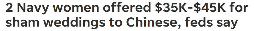 美国司法部门近日对两名美国海军女兵提起联邦起诉,指控她们涉嫌参与婚姻欺诈,帮助中国移民通过假结婚获取绿卡,以换取金钱报酬。这也是今年在杰克逊维尔联邦法院涉及军人的第三起和第四起类似案件。嫌疑人摩根·钱伯斯(Morgan Chambers)和贾辛斯·贝利(Jacinth Bailey)被控共谋实施婚姻欺诈,每项指控最高可判处五年监禁。两名女兵通过一份名为“信息书”(informations)的法院文件被起诉,并放弃了正式起诉程序,这通常意味着被告计划认罪。不过,目前两人尚未在法官面前出庭,也未提交认罪答辩。