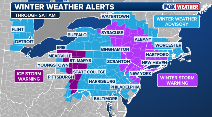 多家航空公司已宣布临时免除改签费用,以应对天气造成的航班调整。纽约、新泽西和宾夕法尼亚等州部分高速公路也对商用车辆实施交通管制,以降低事故风险。