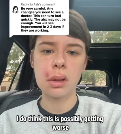 琳赛回忆,挤痘后几天内,鼻子周围明显肿胀,疼痛感持续加剧,随后甚至出现脸部下垂、表情不对称的情况。意识到不对劲后,她前往急诊求医,起初医生怀疑只是一般过敏反应,并开立抗生素让她返家休养。