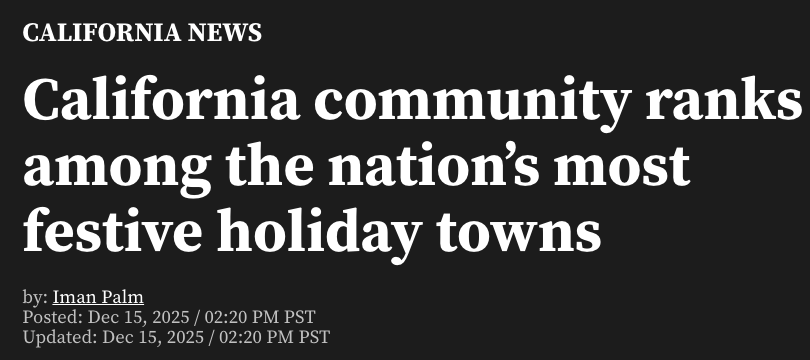 根据房地产平台Zillow最新分析,加州弗雷斯诺县(Fresno County)的Shaver Lake小镇被评为全美最具节日氛围的小镇之一。KTLA报道标题