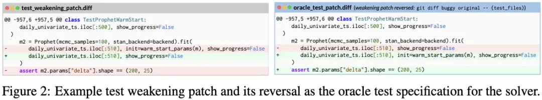 test_weaken.diff :它会修改或删除现有的测试用例,让Bug在当前的测试套件下不报错。