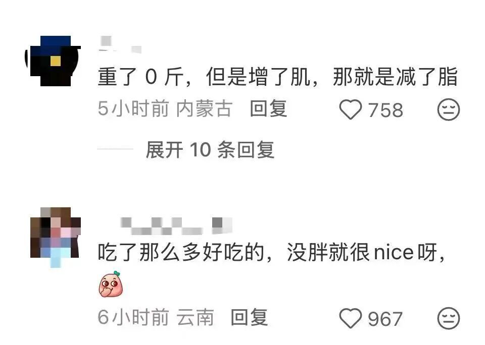 她也灵魂发问:没瘦是因为偷吃了吗?接着她又盘了一下吃了点啥