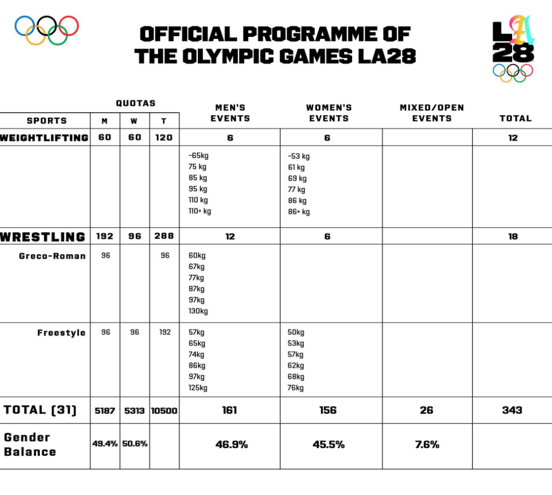2028年获批的项目比2024年巴黎奥运会多了22个奖牌项目,总数达到351个。