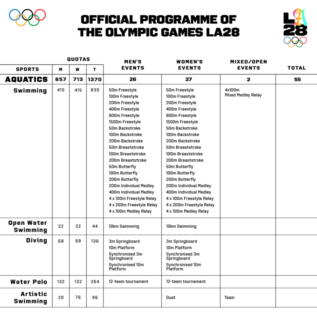 为奥运会划上句点的是游泳项目,将于7月30日(第16天)在SoFi体育场举行,这一体育场在奥运会期间将更名为2028 Stadium。