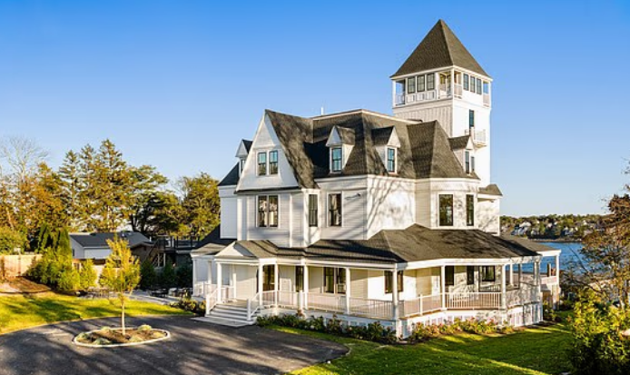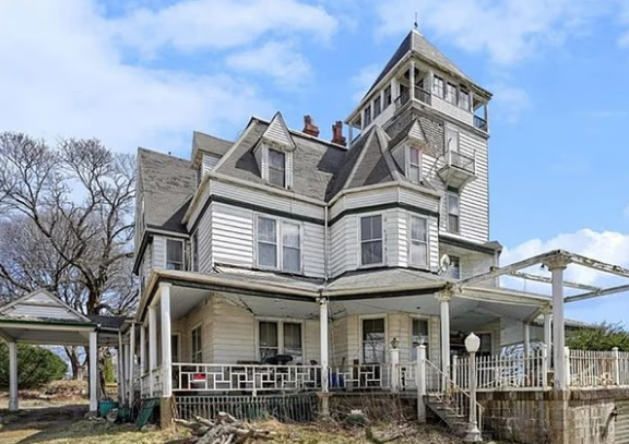 这座豪宅建于1880年,以一位当年显赫的富商命名,原本是一栋四层、气势非凡的海景庄园,占地约1万1000平方英尺,拥有8间卧室。凭借山顶地势与环海视野,它长期被视为社区的重要地标。