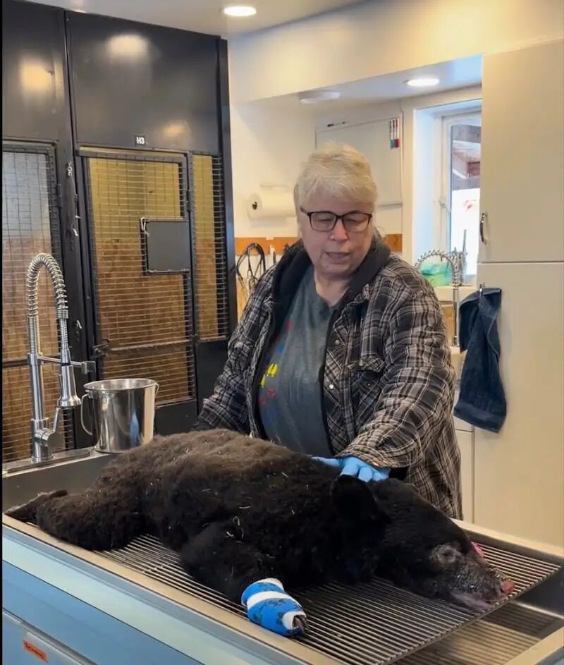 这只幼崽从道森克里克被运送了九个小时,到达位于史密瑟斯附近的动物救助协会康复中心。在那里,它被注射了镇静剂,并接受了面部和爪子烧伤的治疗。起初,兰根从幼崽面部的照片中得知,它可能是冻伤。但仔细观察后,才发现了令人痛心的真相。