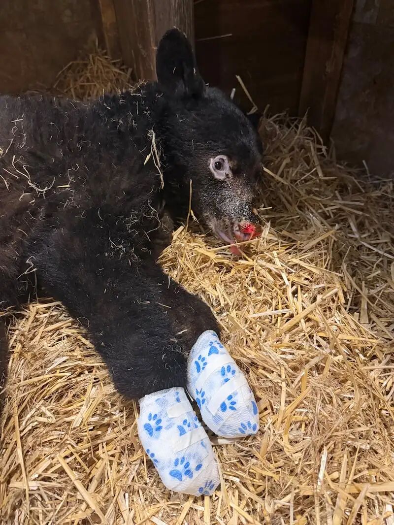 12月20日被发现奄奄一息的一只黑熊幼崽,目前正在BC省史密瑟斯 Smithers 附近的一家野生动物救助中心接受治疗。(图片由北极光野生动物协会/Facebook提供)