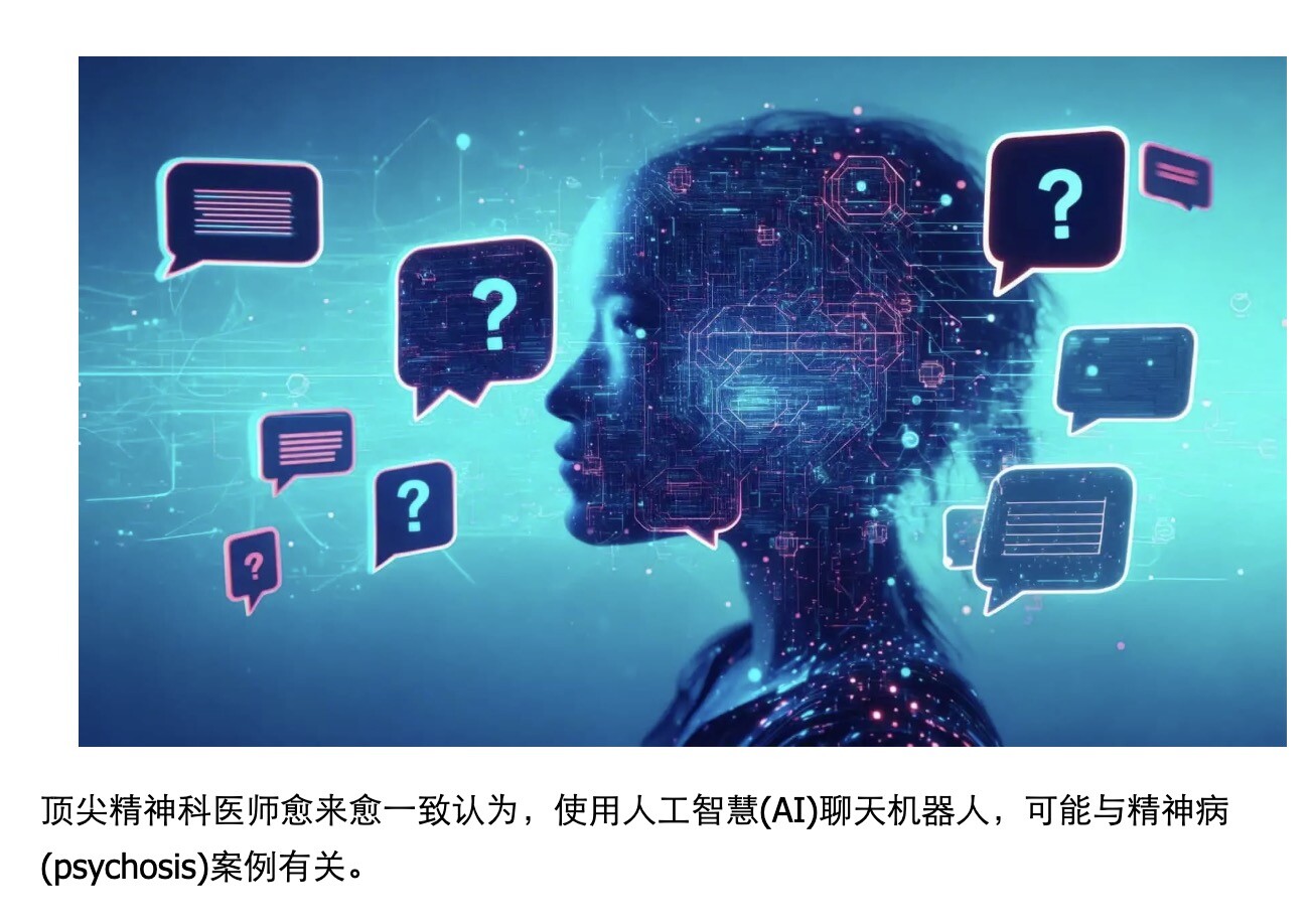 华尔街日报27日报导,在过去9个月中,这些专家已诊治或审阅数十名患者的病历;这些患者在与AI工具进行长时间、充满妄想内容的对话后,出现精神病症状。