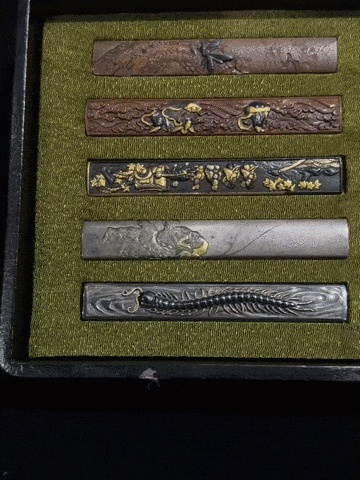 上面的刀装金工件是成实最得意的收藏,金工件是日本美术刀剑收藏的重要门类,也备受中国藏家的喜爱