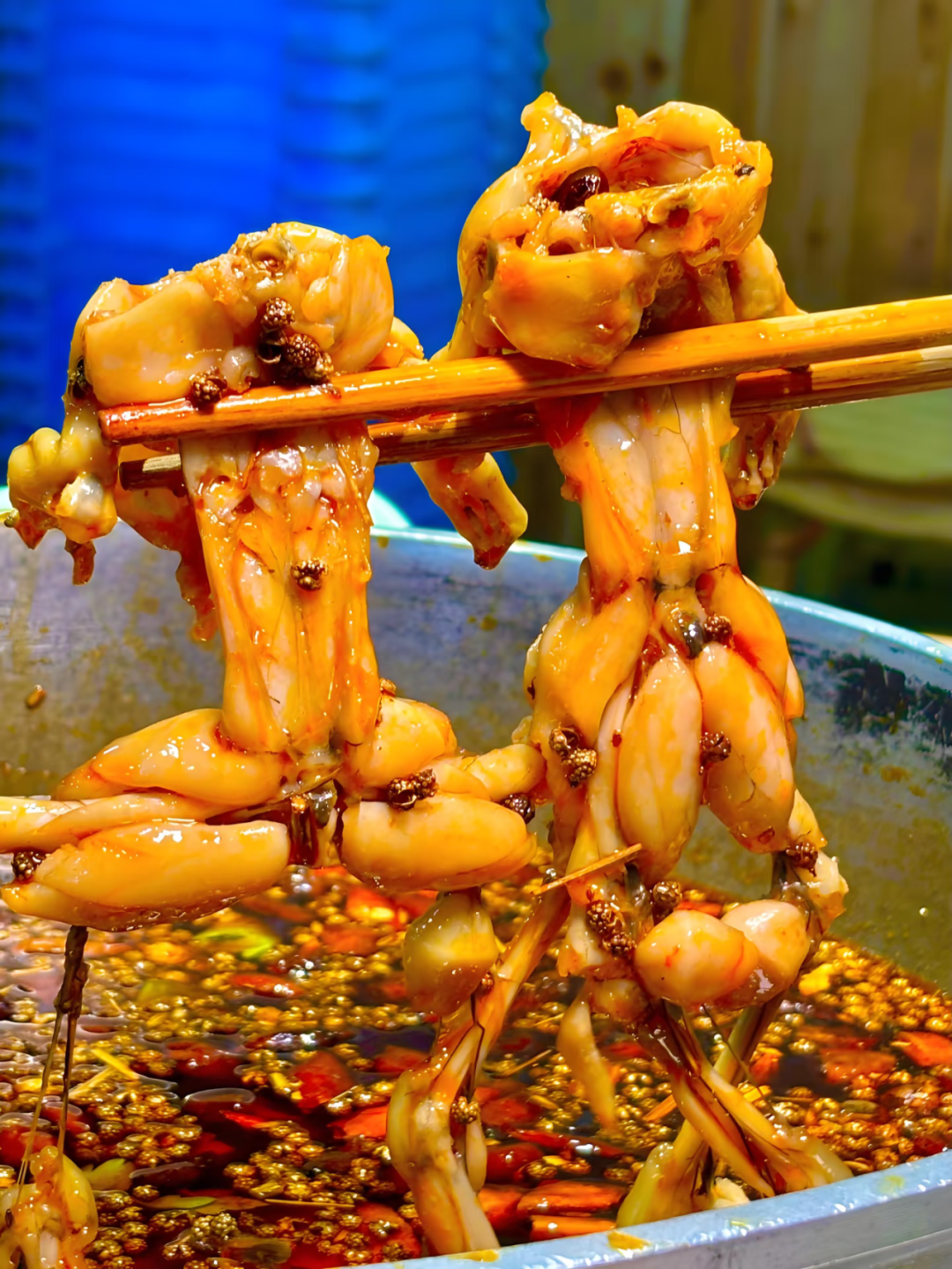 “美蛙”,不是指美好的蛙,而是指美国的蛙!它的本尊,正是原产北美的美国青蛙。这位国际友蛙肉质细嫩,味道鲜美,于是作为食用蛙引进来,没多久就实现美味归化——在火锅里吸饱麻辣汤汁,成就两国友谊。