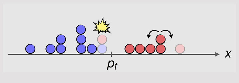 研究人员并没有止步于验证这个规律,他们还尝试用这个数据集找出平方根定律的成因。他们受到物理学中反应-扩散系统的启发,提出了一种名为“潜在流动性”(latent liquidity)的模型。研究人员首先根据价格随时间的扩散定律提出,某只股票的的可用流动性随着当前价格的距离呈线性增加,这会导致在股票当前价格周围形成了一个可流动的“耗尽层”。这种分布会自然导致平方根定律的出现。