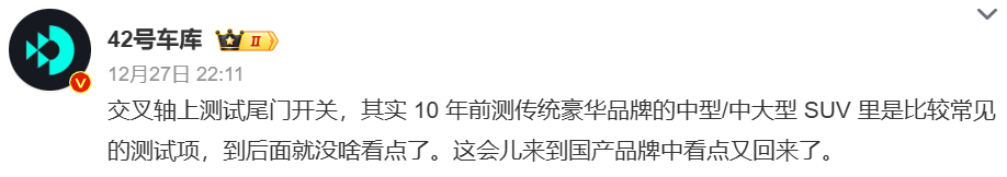 所以说白了,作为一个从油车时代就存在的测试项目,交叉轴关门相比于其他成体系的严谨测试,一直就是个看个乐的民间测试。