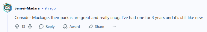“所以想问问,除了 CG 之外,有没有其他在保暖性、舒适度、以及保修/售后服务方面能与之媲美的品牌?我希望买一件至少能穿 5 年、耐穿又好看的外套。有没有买过近几年 Canada Goose 新款的朋友,能分享一下使用感受?”