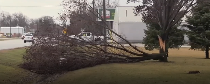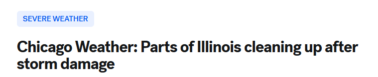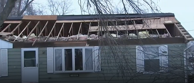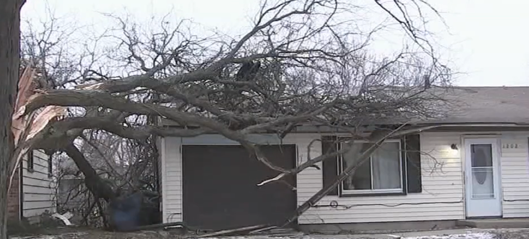 周日过境的风暴系统给芝加哥地区部分地区造成了大范围破坏,包括庞蒂亚克市。
