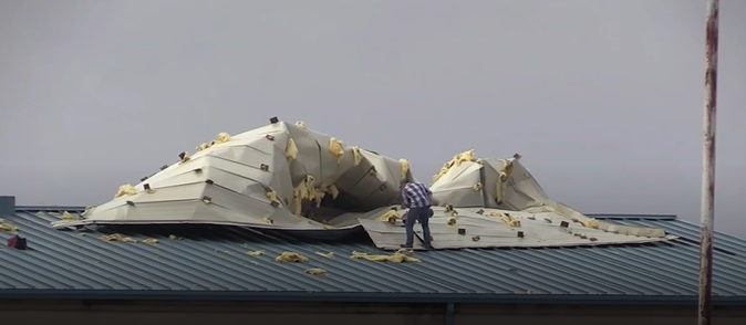 普雷里中央初级中学体育馆的部分屋顶被掀翻。