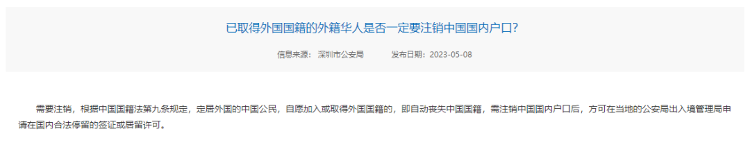 而且这里要插个知识点:就算你不转资产,只要加入外籍,按规定也得注销国内户口。