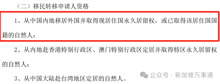或从中国内地赴香港特别行政区、澳门特别行政区取得特区永久居留权,及赴台湾地区定居的自然人。