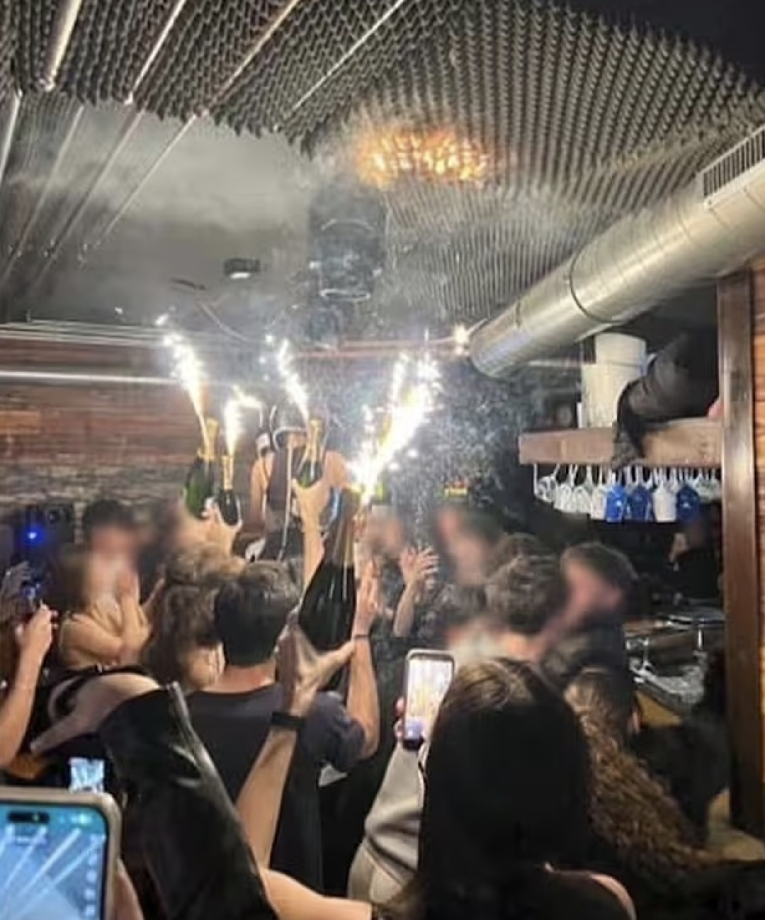 还有目击者表示,火灾当晚有女服务员拿着装在香槟酒瓶里的烟花棒出现在酒吧。而该酒吧2024年发布的一则宣传视频中显示,一些女性戴着摩托车头盔,手持插着烟花棒的酒瓶,在酒吧内走动。另外也有目击者告诉当地媒体,这场毁灭性的事故是由放置在香槟酒瓶中的烟花引起的。一位目击者称,当时有女服务员拿着插着烟花的香槟酒瓶,一名女服务员站在另一名服务员的肩膀上,瓶子和火焰离天花板只有几厘米远,结果引燃了天花板。