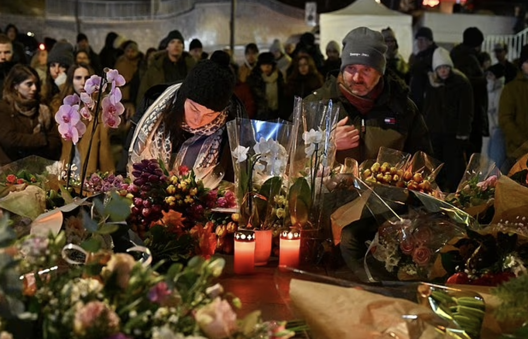 ▲当地时间2026年1月1日,瑞士瓦莱州克朗-蒙大拿,一家酒吧发生火灾已造成约40人死亡,民众在酒吧外点燃蜡烛,献花悼念遇难者 图据视觉中国