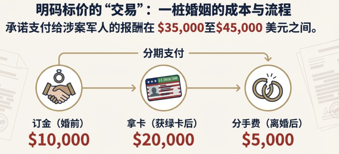 近日,联邦调查局查获一起中介团伙案件,涉及华人买家与美国退伍女兵假结婚以获得绿卡,价格为3.5万至4.5万美元。移民律师警告称,近期婚姻绿卡严查,单凭与美国公民结婚已不再能保证获得美国绿卡。想要成功获得绿卡,申请人必须说服移民官员婚姻是真实的。