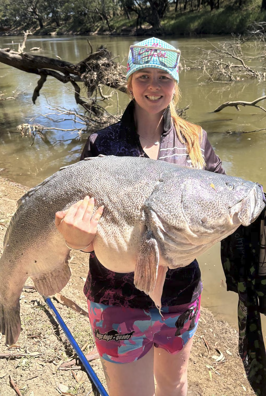 Tulloch是有着5年钓龄的资深爱好者。元旦当天,她钓获了一件无数经验老道的钓鱼人梦寐以求却鲜有机会得见的“战利品”——一条体长110厘米、预估体重达50至60公斤的墨瑞鳕(Murray cod)。