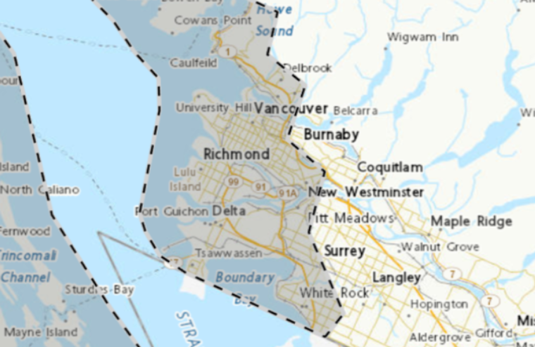 大温地区被纳入警告范围的区域非常多,包括西温、伯恩岛、温哥华、列治文、三角洲、素里、白石等。