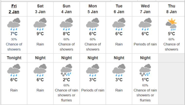 (温哥华一周天气预报,来源:加拿大环境及气候变化部)